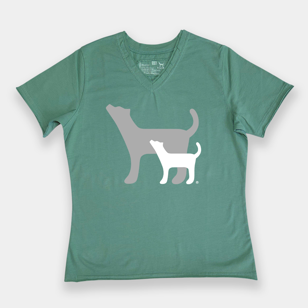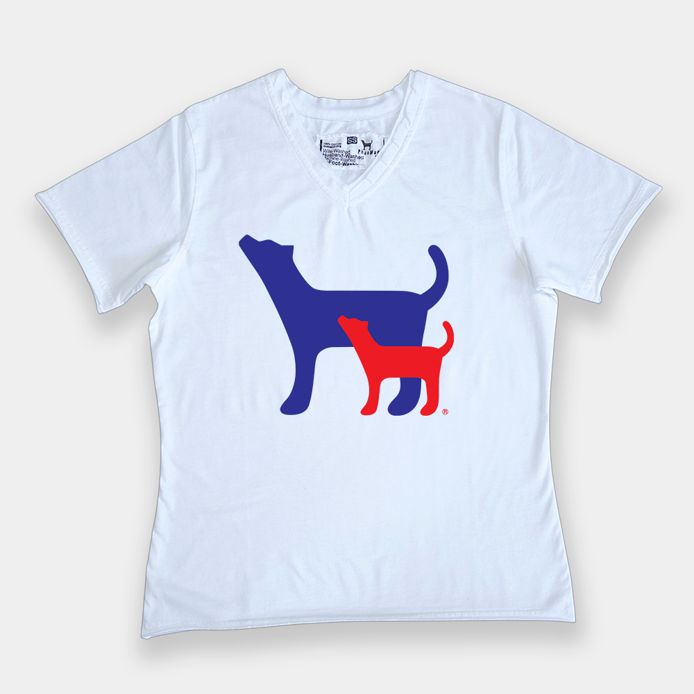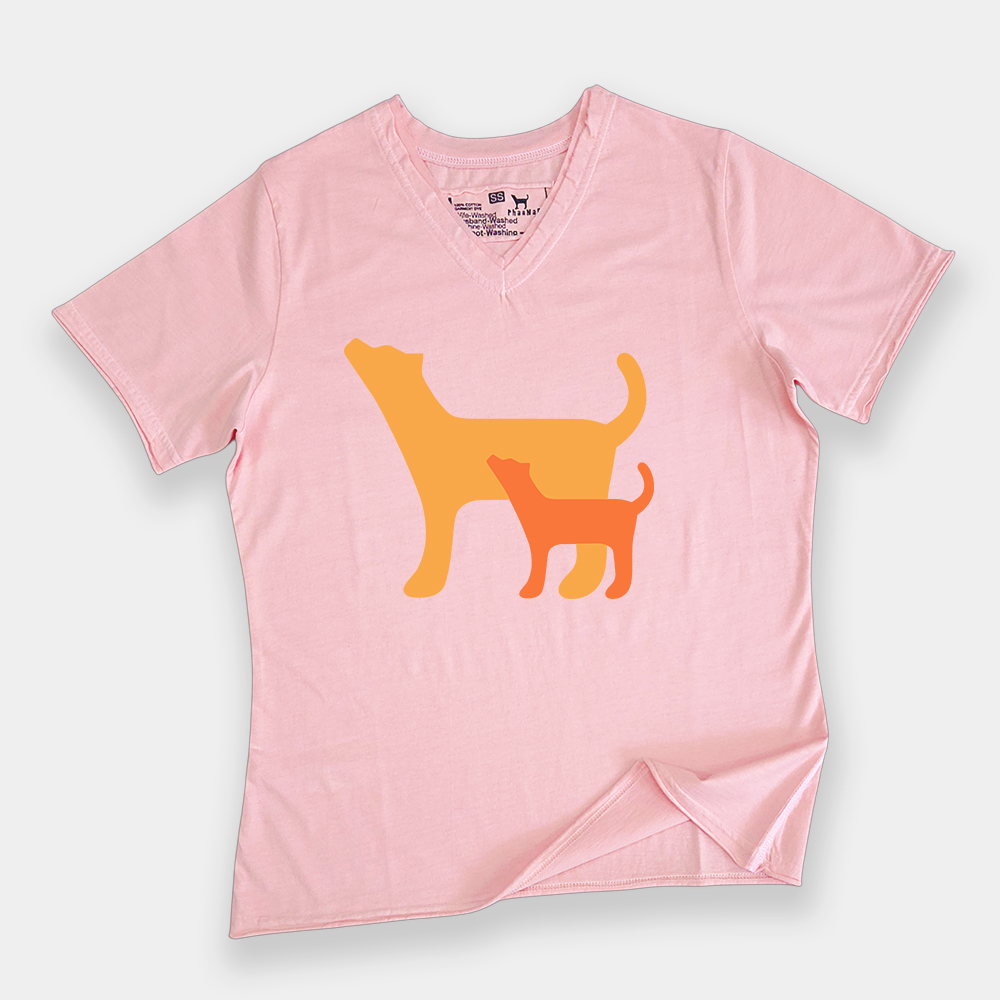 T-Shirts- เสื้อยืดผู้หญิง คอวี ลายหมาบัดดี้